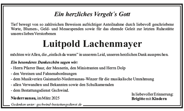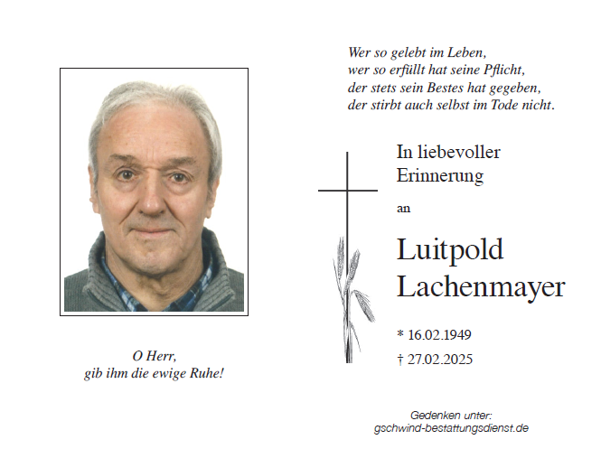wir wünschen Ihnen von Herzen viel Kraft, dass Sie Menschen um sich haben, die Ihnen in dieser schweren Zeit beistehen und Halt geben. Zusätzlich können Sie auf dieser Gedenkseite Erinnerungen teilen und so das Andenken gemeinsam wachhalten.